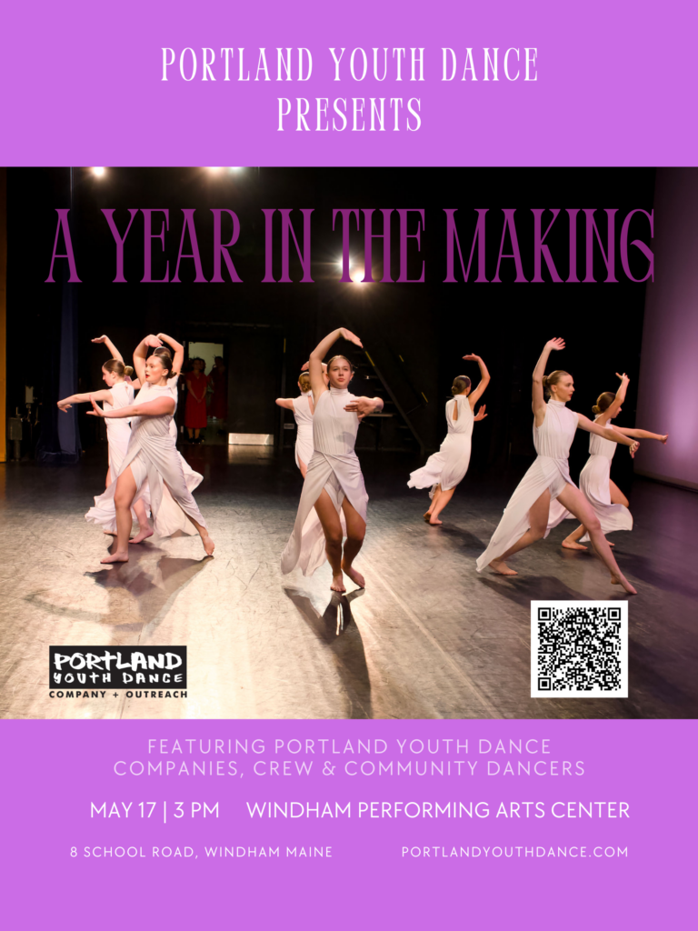 Join us for an exciting afternoon of dance as Portland Youth Dance students and PYD’s community dancers present new works by professional choreographers from across New England and beyond.